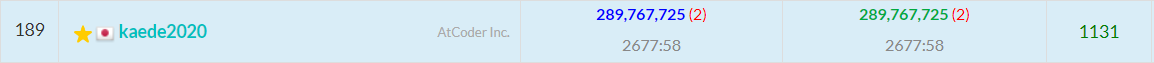 2回目の提出結果は、絶対スコアが11,479,000,000,000、相対スコアは289,767,725、383人中189位になりました。