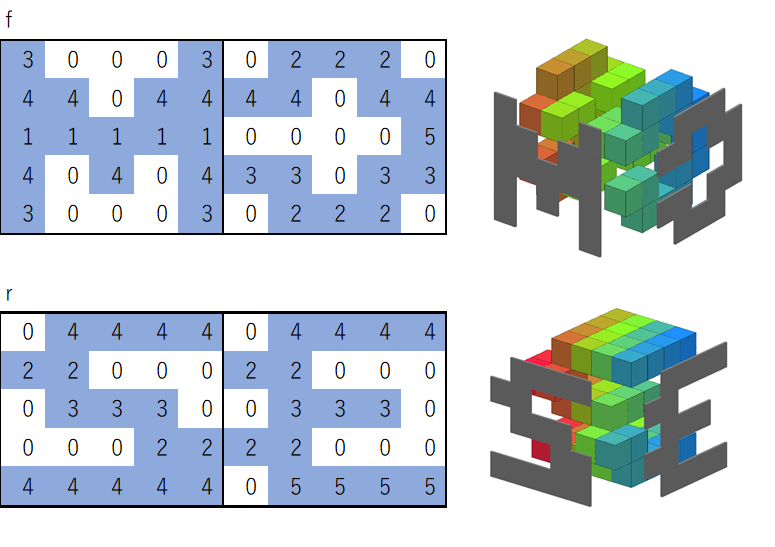 そういえば、ブロックの形が一致を確かめる方法をずっと考えていたのですが、3面(上・前・右)の情報があれば良さそうだと思いました。