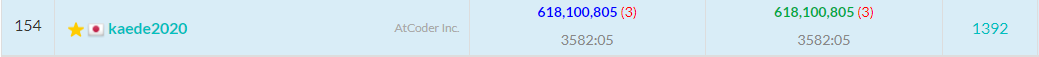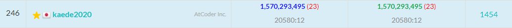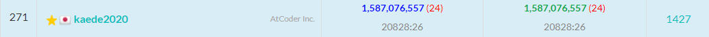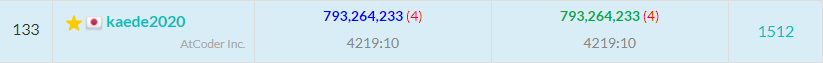 提出します。絶対スコアは880,250,000,001になりました。相対スコアは1,259,718,031になり、697人中234位になりました。