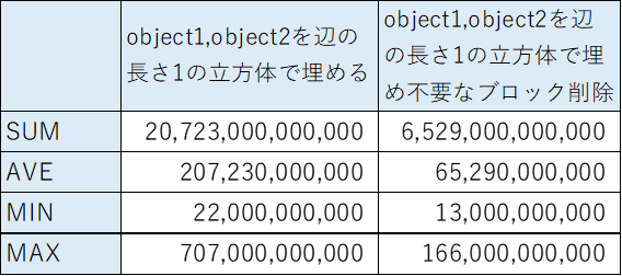 うーん、あんまり変わらない。大きなブロックはオブジェクト2でも大きなブロックを作ることができるときだけ作るようにしようかと思います。