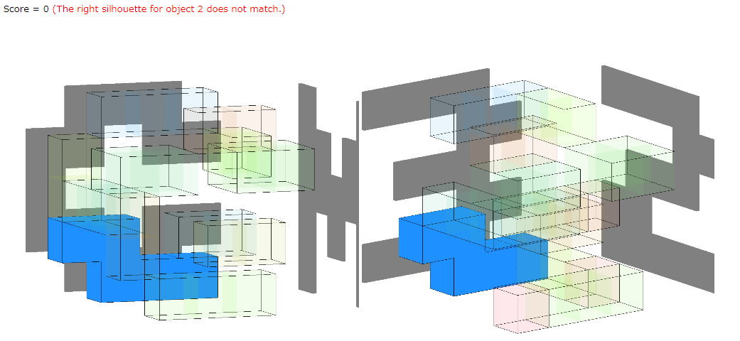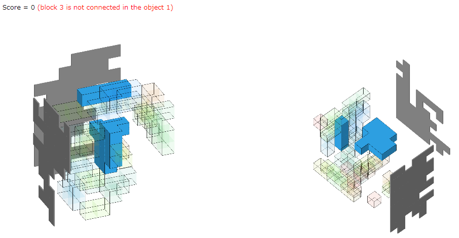 スコアはベストではありませんが、seed0のオブジェクト2のX座標をZ座標に、Y座標をX座標に、Z座標をY座標にしたところビジュアライザのようなブロックができていました。