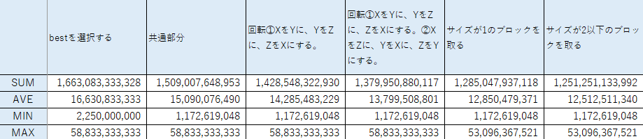 なので、ブロックをくっつけてもいいのかな、とか、同じ数のブロックはIDを入れ替えても良いなと思ったりしています。あと、いろいろなやり方の中でいちばん得点がよかったものを出力したり、他点スタートを試したりもしたいと思います。