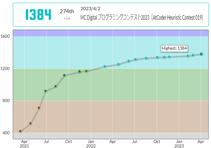 ヒューリスティックのRatingは14上がって1384になりました。