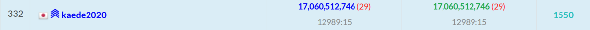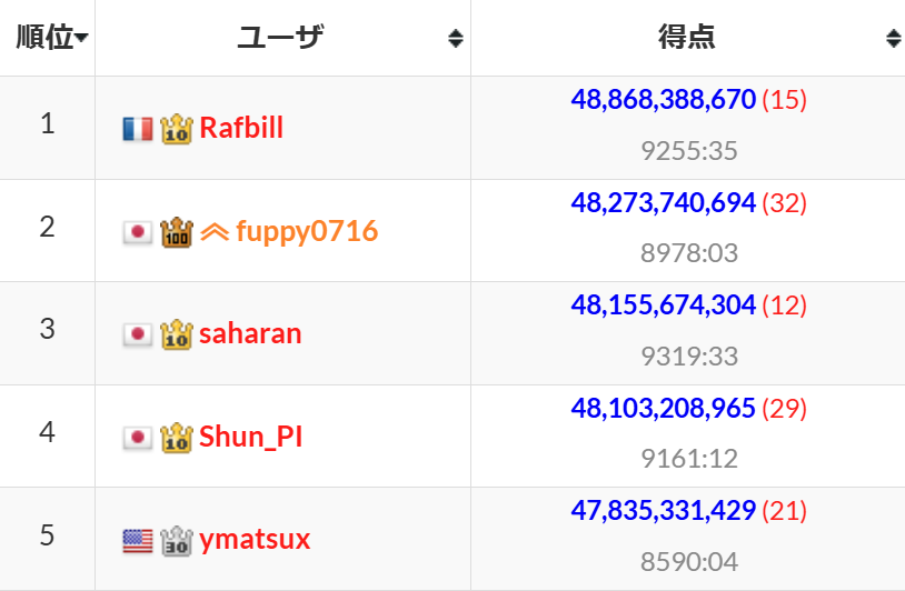 私は1369人中351位、相対スコアは17,177,428,086。ずるずると下がりつつあります。